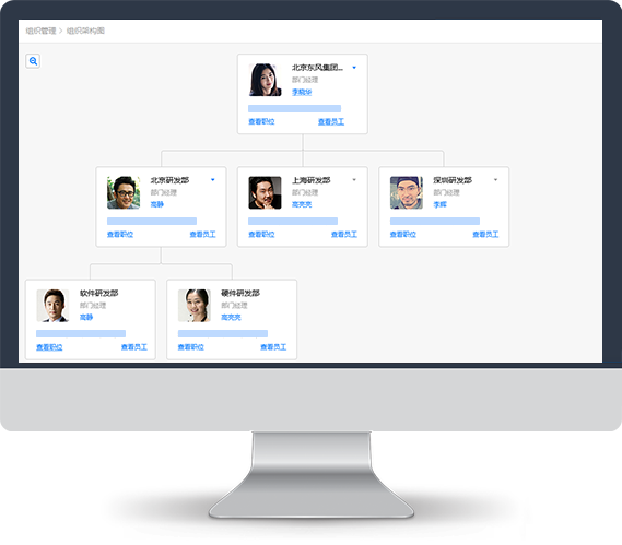 完整的組織、部門、區域、職位管理,多層級組織架構圖,