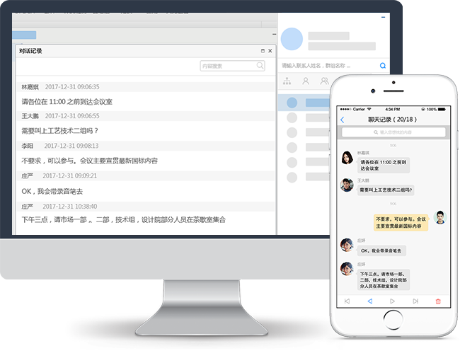 無論是PC端還是移動端登錄,聊天記錄永久云端保存。