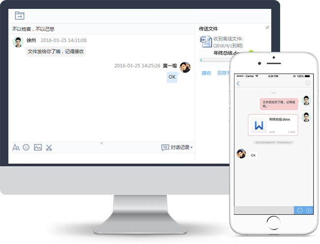 PC端、移動端之間實現(xiàn)消息實效互通、文件離線接收。