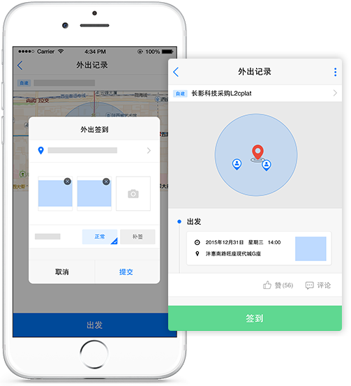 外勤人員在出發(fā)后地、目標 位置輕松簽到簽退,